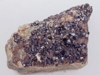 Коллекция Систематическая коллекция, №13252. Друза тетрагонтриоктаэдрических кристаллов андрадита размером до 1см. На другой стороне образца щетка кристаллов диопсида до 2,5см и пластинчатых кристаллов белого сфена до 1см. Размер образца 22х14х8см. Длина экспоната 22.0 см.