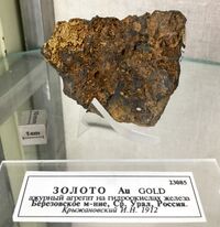Коллекция Систематическая коллекция, №23085. Золото на березите с лимонитом.