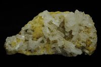 Коллекция Систематическая коллекция, №31084. Отдельные кристаллы и их сростки длинной до 3см на друзе кристаллов серы размером до 0,3см. Размер образца 14х8х7см. Длина экспоната 14.0 см.