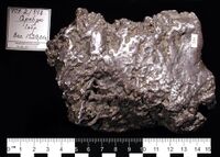 Коллекция Систематическая коллекция, №348. Слегка окатанный уплощенный самородок размером 12х3х8см. Губчатого строения с включениями окатанных зерен предположительно кварца. Длина экспоната 12.0 см.