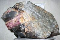 Найден: Савватеевское месторождение, Борщовочный кряж, Восточное Забайкалье, Россия. Расположен на витрине exp53