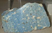 Коллекция Систематическая коллекция, №37149. Бледно-синий зернистый агрегат с прожилками и обособлениями кальцита. Длина экспоната 26.0 см.