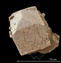 Коллекция Систематическая коллекция, №37614. Пинакоидально-призматический светло-коричневый кристалл 17х11х15см с приросшим менее крупным кристаллом. С клевеландитом и мусковитом. Длина экспоната 17.0 см.Размер минерала 17.00 см.