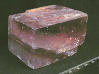 Коллекция Систематическая коллекция, №41769. Розоватого цвета выкол по ромбоэдрической спайности размером 7х5х4см со следами зонального строения кристалла. Длина экспоната 7.0 см.Размер минерала 7.00 см.