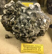 Найден: шахта Капитальная, село Есауловка, Нагольный кряж, Донбасс, Украина.Минералы-спутники: Сфалерит, Кварц. Расположен на витрине exp122