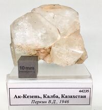 Найден: жила Главная, Ак-Кезень, Калбинский хребет, Казахстан. Расположен на витрине exp12a