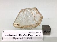 Найден: жила Главная, Ак-Кезень, Калбинский хребет, Казахстан. Расположен на витрине exp12a
