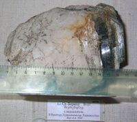 Найден: Западный Пуштиру, Туркестанский хребет, Таджикистан.Минералы-спутники: Турмалин. Расположен на витрине exp53