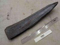 Коллекция Систематическая коллекция, №48450. Фрагмент сферолита радиусом 40см. Размер образца 40х8х4см. Длина экспоната 40 см.