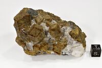 Коллекция Систематическая коллекция, №49791. Друза коричневых кристаллов андрадита {110} размером до 2см на зернистом агрегате с кварцем, кальцитом, гематитом. Участки граней вблизи ребер гладкие, а в центре шероховатые. Длина экспоната 9.0 см.Размер минерала 2.00 см.