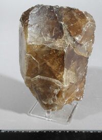 Коллекция Систематическая коллекция, №52755. Коричневый полупрозрачный кристалл размером 16см, ограненный гранями призм и пинакоида. Длина экспоната 16.0 см.