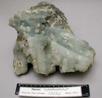 Коллекция Систематическая коллекция, №53132. Агрегаты трубок, сложенных корками бледно-зеленых кристаллов пренита размером несколько мм на массивном агрегате пренита. Длина экспоната 21.0 см.