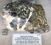 Найден: Дарасун, Забайкалье, Россия.Минералы-спутники: Арсенопирит, Тетраэдрит. Расположен на витрине exp38d