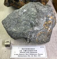 Найден: Дарасун, Восточное Забайкалье, Россия.Минералы-спутники: Сфалерит. Расположен на витрине exp38d