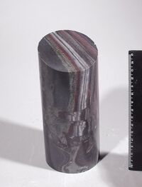 Коллекция Систематическая коллекция, №62353. Полированный керн железистого кварцита размером 8х17см. Длина экспоната 17.0 см.