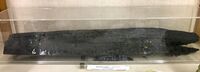 Коллекция Систематическая коллекция, №64577. Почти черный веретеновидный кристалл размером 57х12см. Частично потрескавшийся (с зияющими трещинами) по спайности. Длина экспоната 52.0 см.Размер минерала 52.00 см.