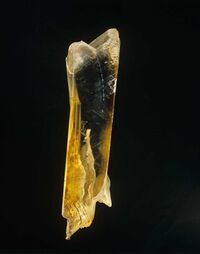 Коллекция Систематическая коллекция, №66346. Фрагмент (выколок по спайности) прозрачного бледно-желтоватого монокристалла гипса. Размер образца 30 х 8 х 6 см. Д.Б.