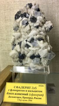 Найден: 1-й Советский рудник, Дальнегорск (бывший Тетюхе), Приморье, Россия.Минералы-спутники: Кальцит, Сфалерит. Расположен на витрине exp122