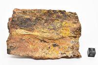 Коллекция Систематическая коллекция, №69519. Желтые корочки тонкоигольчатых кристаллов и примазки по трещинам в сланце(?). Длина экспоната 10 см.