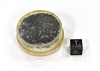 Коллекция Систематическая коллекция, №70231. Черные с зеленоватым оттенком корочки на обломках породы или кварца.