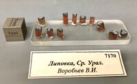Найден: Липовка, Средний Урал, Россия.Минералы-спутники: Рубеллит. Расположен на витрине exp103a