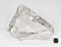 Коллекция Систематическая коллекция, №71900. Бесцветный прозрачный чистый как льдышка обломок кристалла. Длина экспоната 14.0 см.