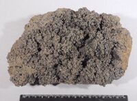 Коллекция Систематическая коллекция, №72806. Друза ромбоэдрических кристаллов сидерита размером до 0,2см. Размер образца 19х14х8см. Длина экспоната 19.0 см.