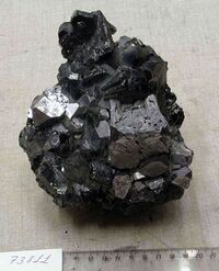 Коллекция Систематическая коллекция, №73811. Друза кубоктаэдрических кристаллов галенита размером до 5см со сдвойникованными кристаллами сфалерита. Размер штуфа 15х12х11см. Длина экспоната 15.0 см.Размер минерала 5.00 см.