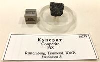 Найден: Rustemburg, Трансвааль, ЮАР.Минералы-спутники: Лаурит. Расположен на витрине exp73-1