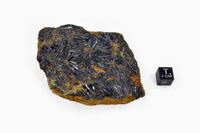 Коллекция Систематическая коллекция, №75333. Плоские радиальные пучки в тонком прожилке в "табачной" руде Длина экспоната 14.0 см.
