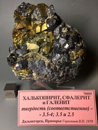 Найден: 2-й Советский рудник, Дальнегорск (бывший Тетюхе), Приморье, Россия.Минералы-спутники: Сфалерит. Расположен на витрине exp122