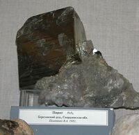 Найден: Березовск, к северо-востоку от Екатеринбурга, Средний Урал, Россия.Минералы-спутники: Кварц. Расположен на витрине exp14