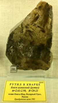 Найден: участок Фейко-Шор, м-ние Омега-Шор, Приполярный Урал, Россия.Минералы-спутники: Рутил. Расположен на витрине exp122