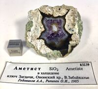 Найден: ключ Загдачи, Ононский хребет, Забайкалье, Россия.Минералы-спутники: Халцедон. Расположен на витрине exp81b