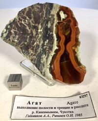 Коллекция Систематическая коллекция, №83257. Агат сердрликовый (заполнение трещин в риолите).