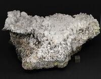 Коллекция Систематическая коллекция, №83348. Фрагмент грифона, внутренняя часть которого покрыта щеткой кристаллов нашатыря, наиболее крупные из которых (до 2см) имеют тетрагонтриоктаэдрический габитус. Длина экспоната 21.0 см.Размер минерала 2.00 см.