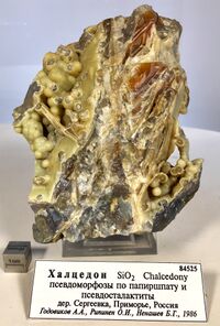 Коллекция Систематическая коллекция, №84525. халцедоновый. Псевдосталактиты и псевдоморфозы по папиршпату. 13х9 см.