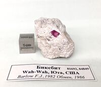 Коллекция Систематическая коллекция, №84849. 5 мм ярко-малиновый короткопризматический кристалл в измененном риолите. 4х3 см.