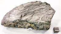 Коллекция Систематическая коллекция, №85135. Серовато-кремовый продольно-шестоватый прожилок из серпентинитов. 16х7.2х2 см.