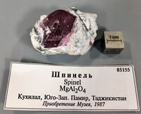 Найден: Кухи-Лал, юго-западный Памир, Таджикистан.Минералы-спутники: Брусит, Форстерит. Расположен на витрине exp74-2