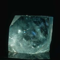 Коллекция Систематическая коллекция, №85171. 8.7х8.2х6.5 см голубовато-зеленый полупрозрачный кристалл мурзинского типа чайной окраски в центральной части и по пинакоиду.