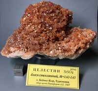 Коллекция Систематическая коллекция, №85542. Друзовая корка 3-10 мм призматических красноватых из-за вкл. гематита? кристаллов. 12.5х8 см.