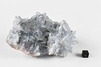Коллекция Систематическая коллекция, №85546. Друза серо-голубых полупрозрачных 2-2.5 см табл.-пирамид. кристаллов. 12х7 см.