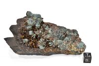 Коллекция Систематическая коллекция, №85655. Голубовато-зеленые тонковолокнистые пучки на корке ромбоэдров темно-коричневого сидерита. 11х5.5х4.5 см.
