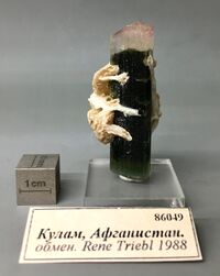 Найден: Кулам, Афганистан.Минералы-спутники: Альбит. Расположен на витрине exp103a