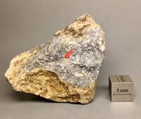 Найден: Caldbeck Fells, Camberland, Англия.Минералы-спутники: Кварц. Расположен на витрине exp73-4