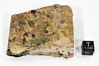 Коллекция Систематическая коллекция, №86572. Оливково-зеленые тонкокрист. корочки с радиально-лучистым эритрином по трещинам в роговике. 6х5 см.