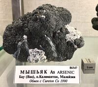 Найден: Kusa mine, near Bau Sarawak, Борнео, Малайзия.Минералы-спутники: Антимонит, Кварц, Реальгар. Расположен на витрине exp13