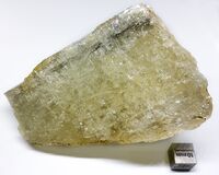 Коллекция Систематическая коллекция, №86714. Частично регенерирован. обломок xl (11 см) с гладкой (с винциналями) пов-тью граней призмы (1-10) и гранями пинакоидов {hol}, формир. грубую штриховку вдоль [010].