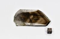 Коллекция Систематическая коллекция, №86734. Отполир. с двух сторон пластина - срез парал. [001] обломка секториального xl, с зональностью лучше проявленной в секторах ромбоэдров. С включениями хлорита. 8х6 см.